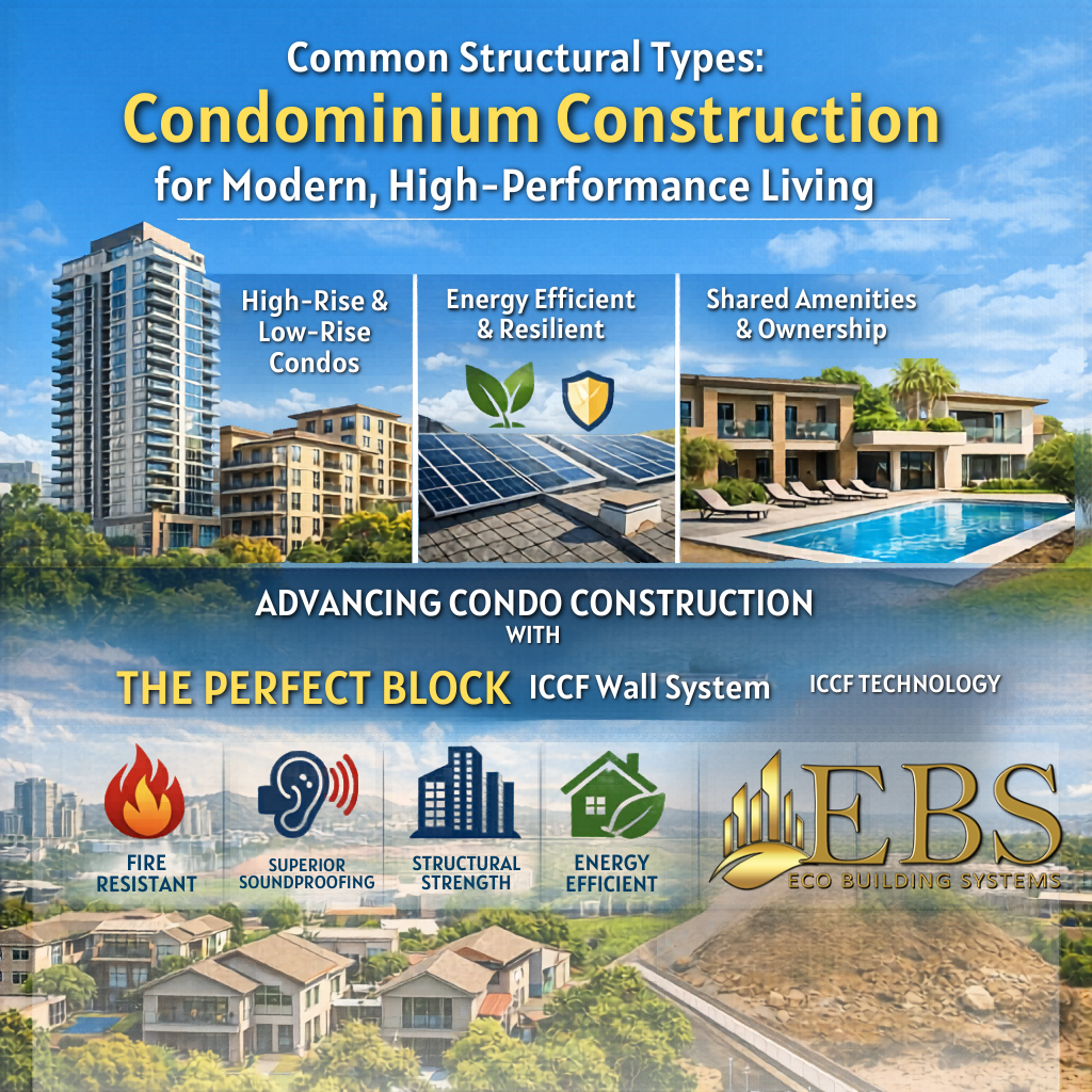 Eco Building Systems, based in Peoria, Arizona, manufactures an advanced wall solution known as The Perfect Block Insulated Composite Concrete (ICCF) Wall System. Engineered for high-performance construction worldwide, this system is transforming how condominium buildings are designed and built – delivering superior strength, energy efficiency, and long-term value.