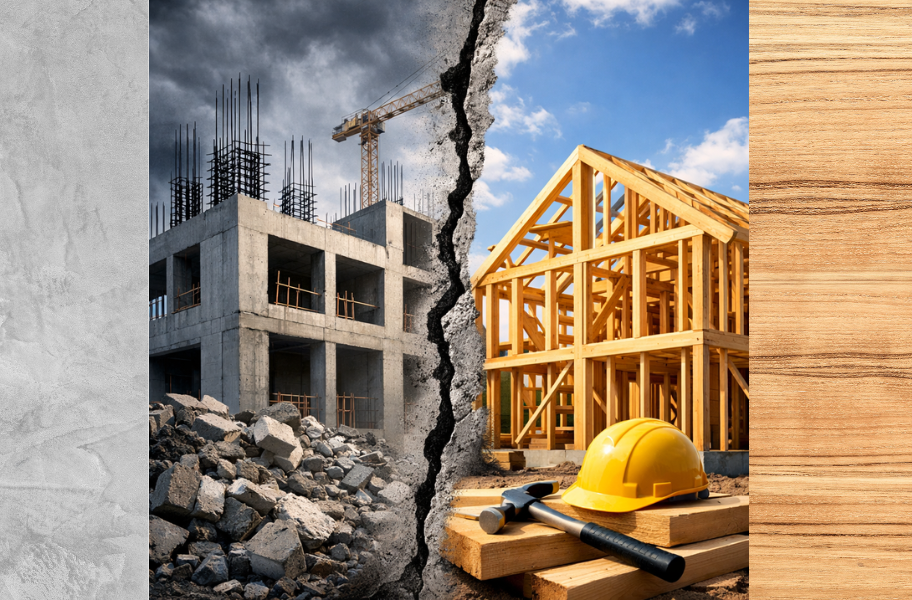 Reinforced Concrete vs. Wood Framing: Why Concrete Walls Outperform in Strength and Safety